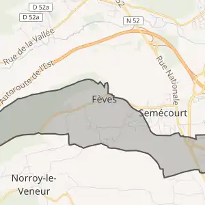 - Розташування муніципалітету Фев на мапі Франції та сусідні муніципалітети
