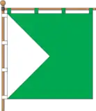 Квадратне зелене полотнище з білим трикутником, основою на древковому краї та вершиною у центрі поля.