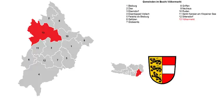 | Фелькермаркт | Völkermarkt | Velikovec | 10 944 | 137,44 | 13 |