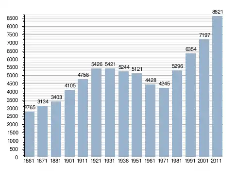 Станом на 31 грудня 2014 року в муніципалітеті офіційно проживав 881 іноземець з 49 країн, серед них 149 громадян країн Євросоюзу та 36 громадян України.[4]