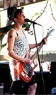 Riot grrrl базувався на саморобній філософії панк-цінностей, приймаючи антикорпоративну позицію щодо самодостатності та незалежності. [18] Його акцент на загальній жіночій ідентичності та сепаратизмі часто виявляється більш тісно пов'язаним з фемінізмом другої хвилі.[21] Групи, пов’язані з цим рухом, включали Bratmobile, Excuse 17, Jack Off Jill, Free Kitten, Heavens to Betsy, Huggy Bear, L7, Fifth Column та Team Dresch.[20]
