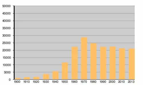 | 1960 | 22 149 | 91.4% | |