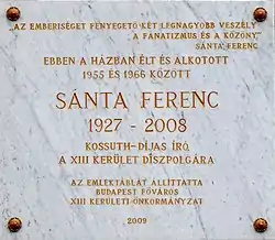 ![]() Меморіальна дошка Ференца Шанта (2009) | |