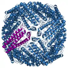 Ферити́н — складний білковий комплекс (залізопротеїд), що виконує роль основного внутрішньоклітинного депо заліза в людини та тварин. Структурно складається з білка апоферитину й атома тривалентного заліза в складі фосфатного гідроксиду. Одна молекула феритину може містити до 4000 атомів заліза. Міститься практично у всіх органах і тканинах і є донором заліза в клітинах, які мають в ньому потребу.[1]