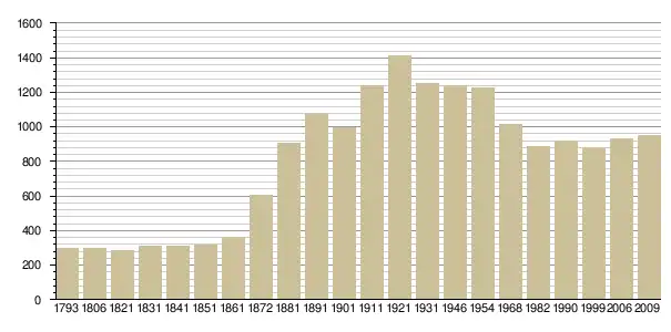 Динаміка населення (base Cassini de l'EHESS pour les nombres retenus jusque 1962[3], base Insee à partir de 1968 (population sans doubles comptes puis population municipale à partir de 2006)[4] · [5] ):