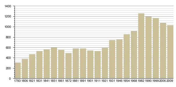 Динаміка населення (base Cassini de l'EHESS pour les nombres retenus jusque 1962[3], base Insee à partir de 1968 (population sans doubles comptes puis population municipale à partir de 2006)[4] · [5] ):