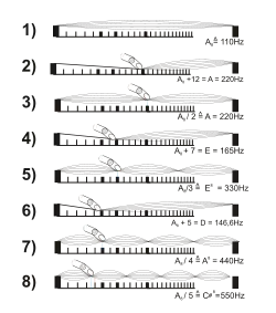 Звук-флажолет отримується шляхом легкого торкання пальцем до струни в тому місці, де вона поділяється на половинні, треті, чверті та інші частини. Такий дотик не заважає коливатися цим частинам, що видають гармонійні призвуки і знищує коливання всіх великих частин струни. В результаті чути свистячий звук — флажолет, тобто складна частина звичайного звучання струни.