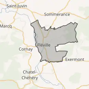 - Розташування муніципалітету Флевіль на мапі Франції та сусідні муніципалітети
