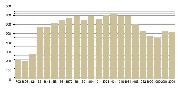 Динаміка населення (base Cassini de l'EHESS pour les nombres retenus jusque 1962[3], base Insee à partir de 1968 (population sans doubles comptes puis population municipale à partir de 2006)[4] · [5] ):