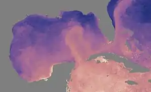 Флоридська течія несе 32·106 м³ води за секунду при швидкості 1,8 м/c.