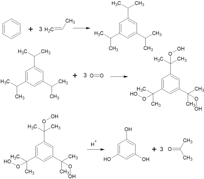 Також отримують окисненням 1,3,5-триізопропілбензену[2]: