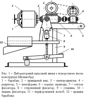 Корисну копалину для дослідів по флотації подрібнюють, наприклад, у лабораторних кульових млинах конструкції Механобру (рис. 1) або інших. Такі млини можна використовувати для визначення подрібнюваності корисних копалин, а також для підготовки пульпи до дослідів по гравітації, флотації та інших методів збагачення.