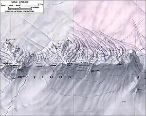 ![]() Топографічна мапа західної та центральної частин хребта Флуд | ||||
