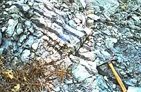 Флінт (чорні включення-смуги) в девонських вапняках. Пенсільванія