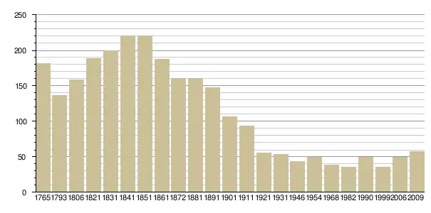Динаміка населення (Baratier, Duby & Hildesheimer pour l’Ancien Régime ; Insee[3], EHESS[4] pour les chiffres issus des recensements légaux ):