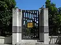 - Вхідна брама з кам'яними стовпами зі сторони Бурґтеатру датується 1883 роком.