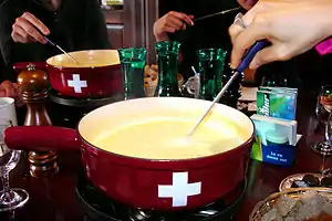 Фондю́ (фр. fondue, італ. fonduta, буквально — «розтоплена, розплавлена») — традиційна альпійська страва з плавленого сиру з додаванням спецій, яку готують і зазвичай споживають у спеціальному посуді; відома перш за все у швейцарському куховарстві, але також у французькому, італійському і частково південно-німецькому (Баден-Вюртемберг).