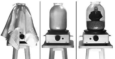 23 червня 1994 року. Місце проведення: Національний художній музей України. Об'єкт — трилітрова банка зі смальцем та шкварками, електроплитка, фото Президента України Леоніда Кравчука, занурене у смалець. При включенні електроплитки смалець у банці починає топитись, стає прозорим і відкриває глядачеві законсервований (муміфікований) образ Президента.