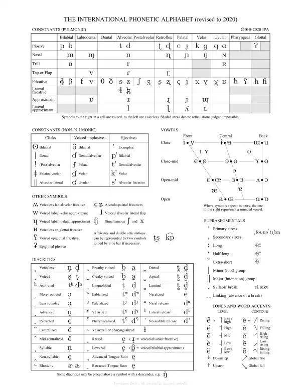 - International Phonetic Association. (1999). Handbook of the International Phonetic Association: A Guide to the Use of the International Phonetic Alphabet. Cambridge: Cambridge University Press. ISBN 0-521-65236-7ISBN 0-521-65236-7 (hb); ISBN 0-521-63751-1 (pb).