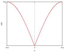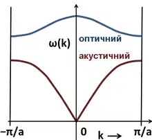 Для трьох гілок частота коливань лінійно залежить від квазі-імпульсу в області малих квазі-імпульсів (Γ-точка зони Брілюена). Така залежність характерна для законів дисперсії звуку чи світла. Ці три гілки називаються акустичними фононами. У випадку акустичних фононів елементарна комірка зміщується при коливаннях як одне ціле.