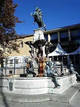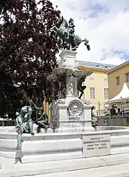 Ініціатором створення пам'ятника став сам ерцгерцог Леопольд V Фердинанд. Спочатку він хотів, щоб, крім власної кінної статуї, всю композицію прикрашали ще багато алегоричних фігур з античної міфології. Але через передчасну смерть ерцгерцога в 1632 році (у віці 45 років) повністю задум так і не був реалізований. На даний час біля постаменту розміщені шість фігур: Океану, Діани, Амфітрити, Мопса, Нептуна і Тритона.