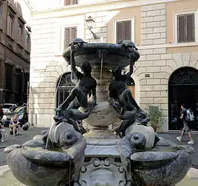 Проект фонтану, створений Джакомо делла Порта, повторював дизайн подібних фонтанів, теж з кулею внизу на п'єдесталі, від якого вода йшла вгору і потім витікала зверху в полігональну чашу. Але цей фонтан відрізняє чудове оформлення, яке було доручено виконати молодому скульпторові Таддео Ландіні (1550—1596). Вперше в Римі фонтан прикрасили фігури чотирьох голих хлопців та восьми дельфінів. Фігури спочатку планувалося виготовити з мармуру, але потім було вирішено зробити їх бронзовими, що обійшлося дорожче. Фігури юнаків виконані в стилі маньєризму, запозиченого у флорентійського фонтану Нептуна.