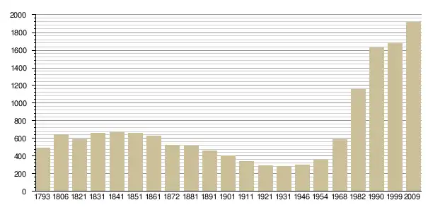 - Insee : historique des populations par commune depuis le recensement de 1962, наведено за французькою вікіпедією