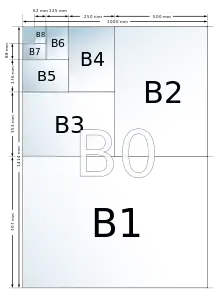 На додаток до серії A, існує менш поширена серія B. Площа аркушів серії B є середнім геометричним послідовних аркушів серії А. Таким чином, В1 знаходиться між A0 і A1, а площа дорівнює 0,71 м² (). Як наслідок, довжина В0 дорівнює 1 метру, а решта аркушів серії В має довжину в половину, чверть, і так далі метру. Хоча менш поширена в офісах та канцеляріях, її використовують в ряді спеціальних випадків. Багато плакатів друкують на папері формату B або наближених до нього аркушах, наприклад, 50 см × 70 см, B5 відносно часто використовують в книжках. Аркуші серії B використовують також для конвертів та паспортів.