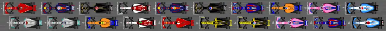 - Александр Албон мав стартувати з останнього ряду, за перевищення ліміту силових установок. Проте через штраф у іншого пілота стартував на одне місце вище.