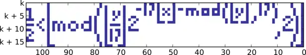 Константа k є простим монохромним растром, в формулі вона використовується як двійкове число помножене на 17. Якщо k поділити на 17, молодший біт відповідає верхньому правому куту; решта 17 молодших біт відповідають правому стовпчику пікселів; наступні 17 молодших біт відповідають другому стовпчику з права, і так далі.