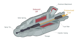 В типову систему подачі форсунки високого тиску входять повітряний нагнітач, паливна помпа, фільтр і клапан регулювання тиску. Після запуску системи помпа викачує паливо з бака й через фільтр підводить його до клапана регулювання тиску, який відкривається, коли тиск досягає заданого рівня (~0,7 МПа). В наслідок чого паливо поступає в розпилювач форсунки.