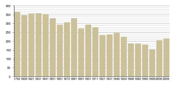 Динаміка населення (base Cassini de l'EHESS pour les nombres retenus jusque 1962[3], base Insee à partir de 1968 (population sans doubles comptes puis population municipale à partir de 2006)[4] · [5] ):
