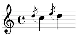 Форшлаг виконується за рахунок скорочення зазначеної тривалості однієї із сусідніх з ним нот.