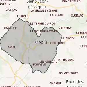- Розташування муніципалітету Форій на мапі Франції та сусідні муніципалітети