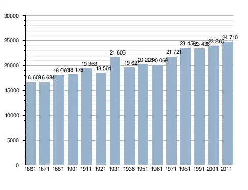 Станом на 31 грудня 2014 року в муніципалітеті офіційно проживало 2449 іноземців з 59 країн, серед них 445 громадян країн Євросоюзу та 12 громадян України.[4]