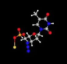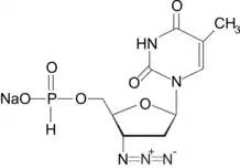 Фосфазид — синтетичний противірусний препарат з групи нуклеозидних інгібіторів зворотньої транскриптази. По хімічній будові фосфазид є фосфорильованим похідним зидовудину.[1][4] Механізм дії препарату полягає в утворенні активного метаболіту — азидотимідіну трифосфату, що інгібує фермент вірусу ВІЛ зворотню транскриптазу та інгібує α-, β- та γ-ДНК-полімерази людини, але інгібуючий ефект до ферментів людини у 100 разів менший, ніж до ферментів вірусів.[2] Згідно даних розробників препарату, фосфазид більш ефективний проти вірусу ВІЛ та має у 6—8 разів меншу токсичність у порівнянні з зидовудином[1] та має активність до інших ретровірусів[2], у тому числі вірусу гепатиту B.[4] Чутливими до дії фосфазиду є такод бактерії Bacillus cereus, Escherichia coli, Pseudomonas aeruginosa, Staphilococcus aureus, а також збудник мікозів Candida albicans.[5] За розробку фосфазиду колектив спеціалізованої науково-дослідної лабораторії епідеміології та профілактики СНІД був удостоєний Державної премії Росії в області науки та техніки за 2000 рік.[6]