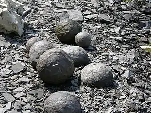 ![]() Фосфорити серед уламків вендських аргілітів; каньйон Середнього Дністра | ||||