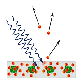 Фотоефе́кт — явище «вибивання» світлом електронів із речовини. Це повне або часткове вивільнення електронів від зв'язків з ядрами атомів речовини внаслідок дії на неї електромагнітного проміння (світла, рентгенівського чи гамма-променів).