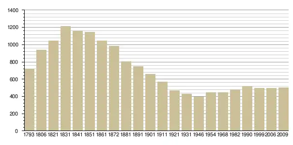 - Notice communale Cassini :recensements de population (tableau і diagramme d'évolution), наведено за французькою вікіпедією