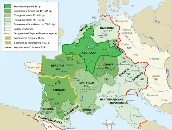 - Військово-політична хронологія франків[недоступне посилання з липня 2019] (рос.)