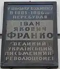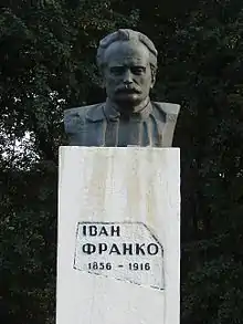 Іва́н Я́кович Франко́ (27 серпня 1856, с. Нагуєвичі — 28 травня 1916, Львів, Австро-Угорщина) — видатний український поет, прозаїк, драматург, літературний критик, публіцист, перекладач, науковець, громадський і політичний діяч. Доктор філософії (1893), доктор габілітований (1895), дійсний член Наукового товариства імені Шевченка (1899), почесний доктор Харківського університету (1906)[7][8]. Член Всеукраїнського Товариства «Просвіта».