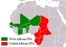 Насправді, під назвою «франк CFA» існує дві окремі грошові одиниці: західноафриканський франк (код валюти XOF) і центральноафриканський франк (код XAF). Вони розрізняються значенням французької абревіатури CFA. Обидва африканські франки мають ідентичний обмінний курс відносно євро і гарантуються французьким казначейством, але західноафриканський франк не приймається як платіжний засіб у країнах обігу центральноафриканського франка, та навпаки.