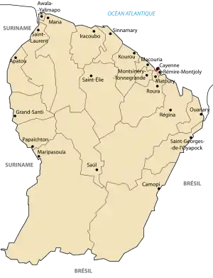 | Сіннамарі | Sinnamary | 97312 | 97315 | 3110 | 2007 | 1340 |