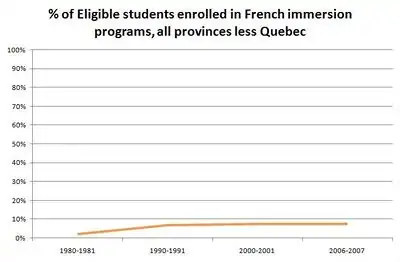 Наразі програми французького занурення найбільш популярні в провінції Нью-Брансвік, де французька мова є однією з двох офіційних, і на острові Принца Едуарда. Найменшою популярністю вони користуються в Саскачевані. Хоча в Західній Канаді спостерігається значне зростання населення через приплив емігрантів, це майже не позначилося на зростанні учасників програм французького занурення.