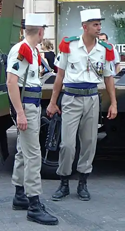 Рядових легіонерів можна впізнати за білим головним убором (képi blanc). Колір берета в Легіоні зелений (béret vert), значок на ньому (insigne béret) — такий, як у всій французької армії, праворуч.