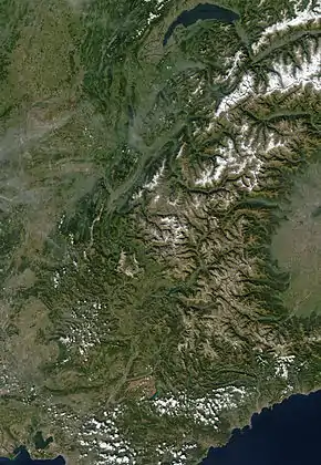 ![]() Фото NASA (2002), Французькі Альпи. |
