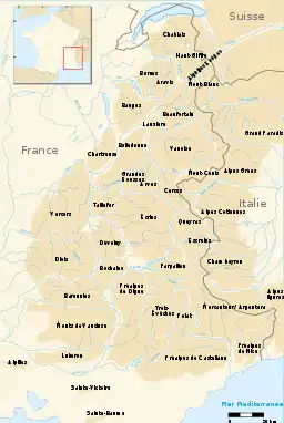 - Французькі високі Альпи (центральна частина біля швейцарсько-італійського кордону);