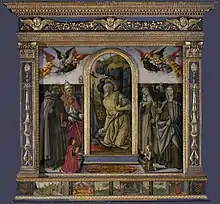 Мадонна з немовлям на троні зі святими і ангелами. 1492—1495 рр., музей Метрополітен, Нью-Йорк