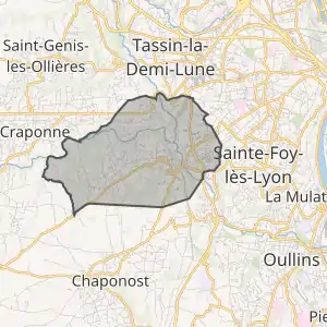 Муніципалітет розташований на відстані[2] близько 400 км на південний схід від Парижа, 7 км на захід від Ліона.