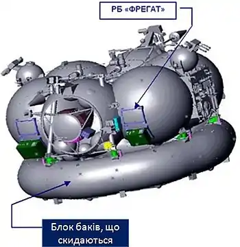 - блок баків, що скидається, який являє собою тороподібну конструкцію, що складається з двох баків пального і двох баків окислювача.